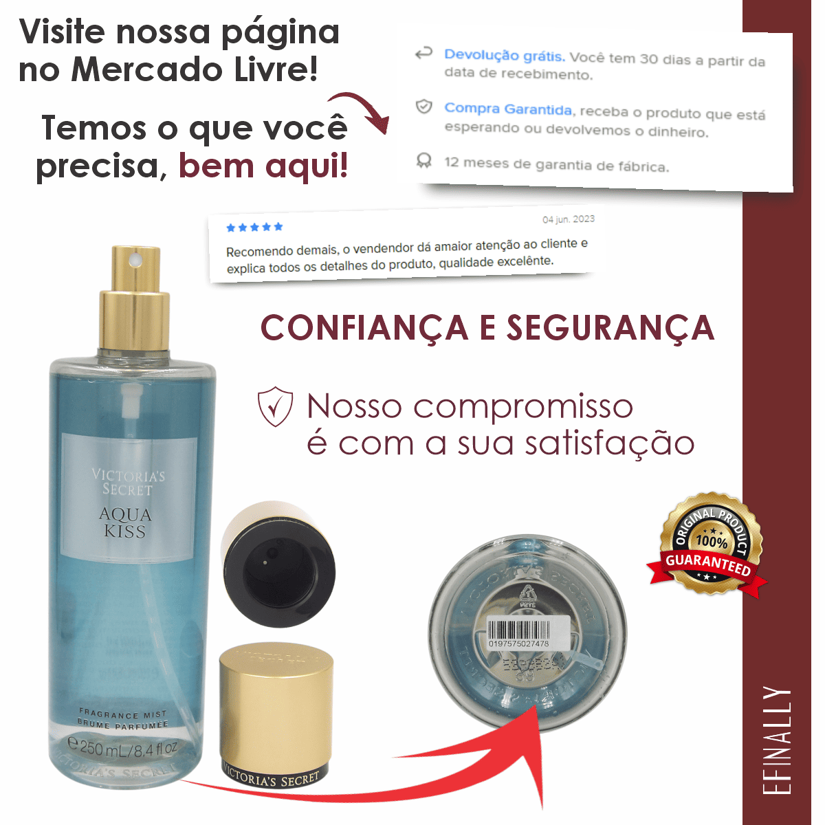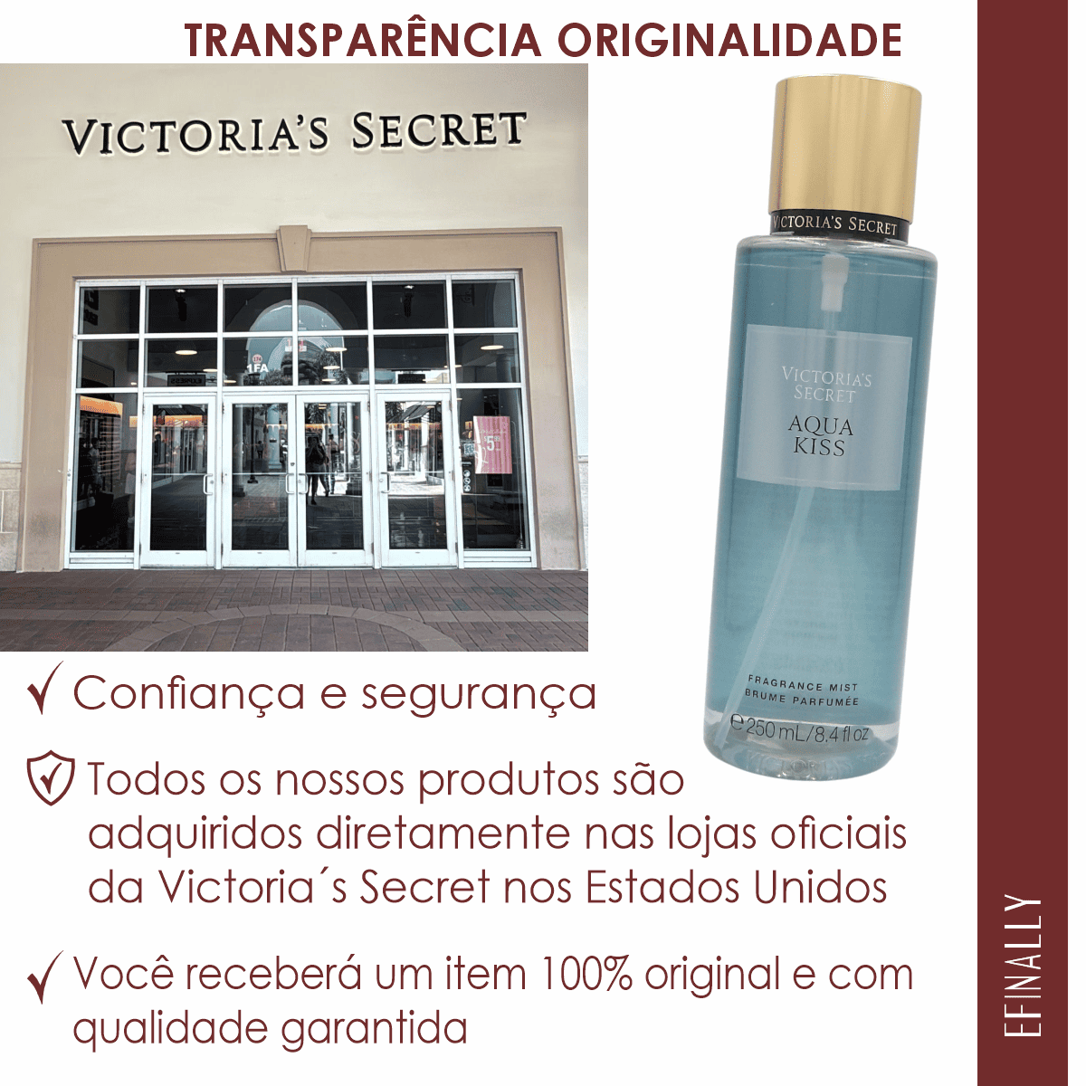 Todos os produtos são adquiridos em lojas oficiais da Victoria’s Secret nos EUA, garantindo autenticidade.