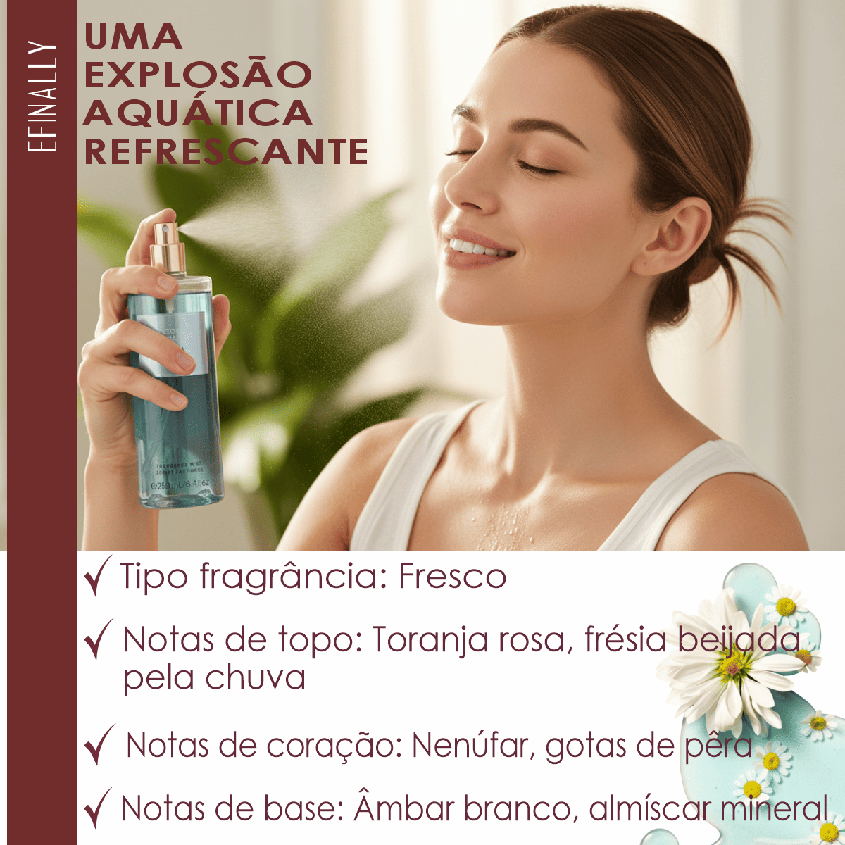 Fragrância fresca e envolvente – Notas aquáticas e florais suaves