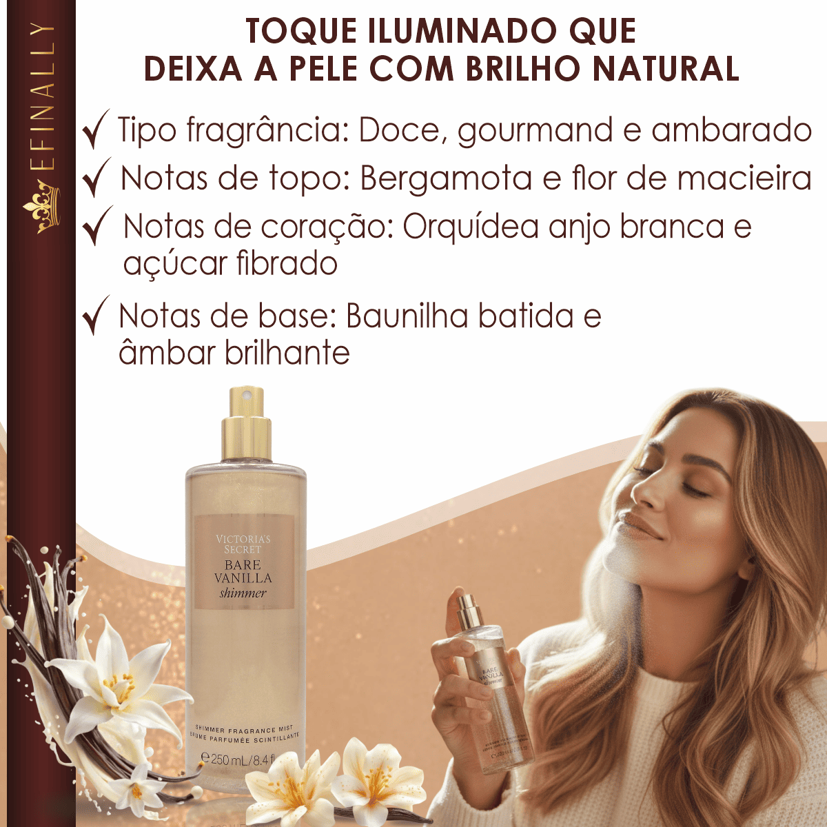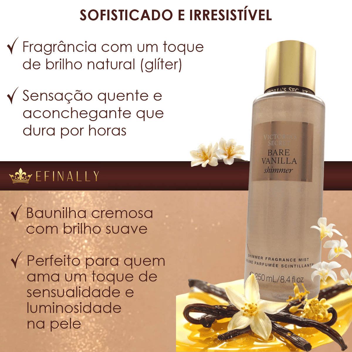 Uma fragrância irresistível com baunilha cremosa + brilho suave, perfeita para quem ama um toque de sensualidade e luminosidade na pele.