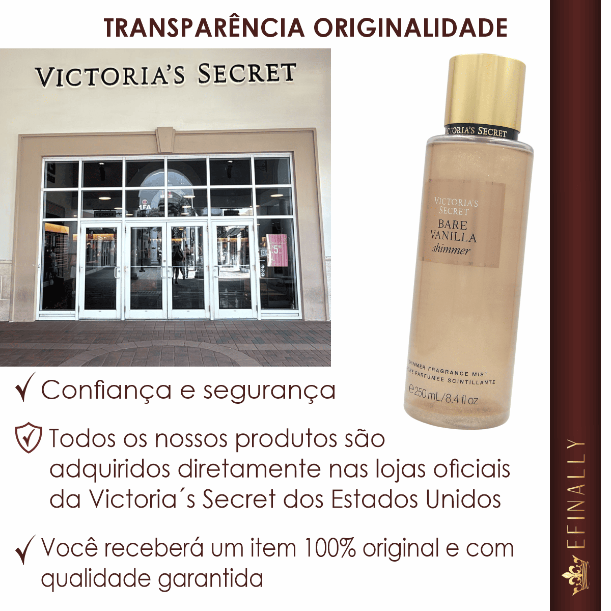 Todos os produtos são adquiridos em lojas oficiais da Victoria’s Secret nos EUA, garantindo autenticidade.