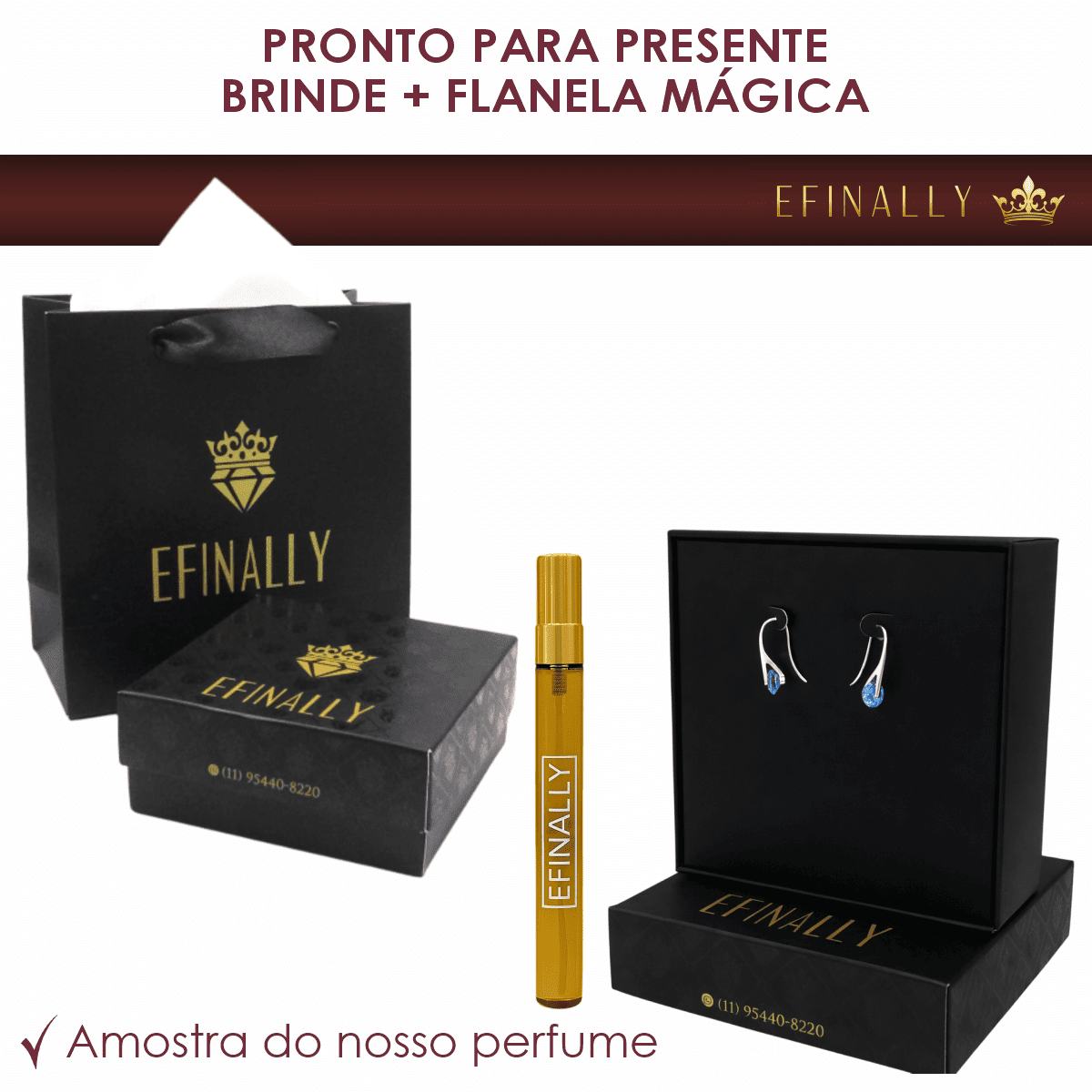 Acompanha embalagem pronta para presente, flanela mágica para limpeza e brinde exclusivo EFINALLY