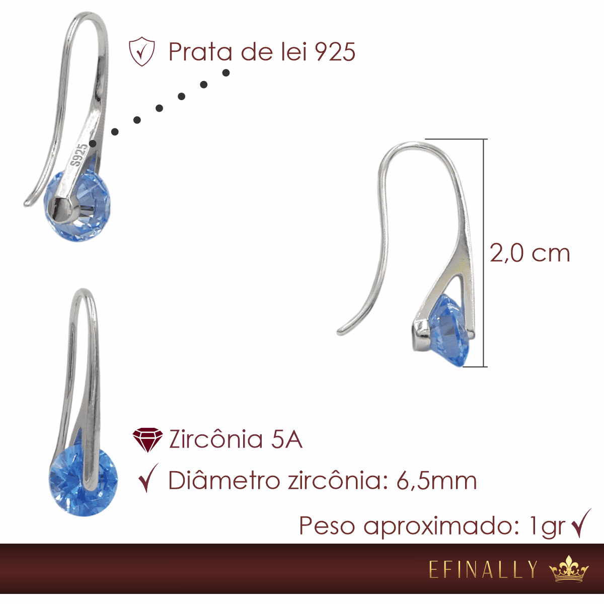 Seja o primeiro a avaliar “Brinco Feminino Prata 925 Zircônia 5A Importado Presente Luxo Efinally”
